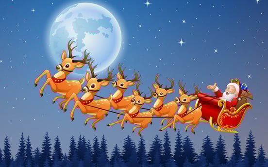 As Santa flew into the sky, the clock tower struck midnight. DONG! DONG! The bell rang, and everyone in town cheered.