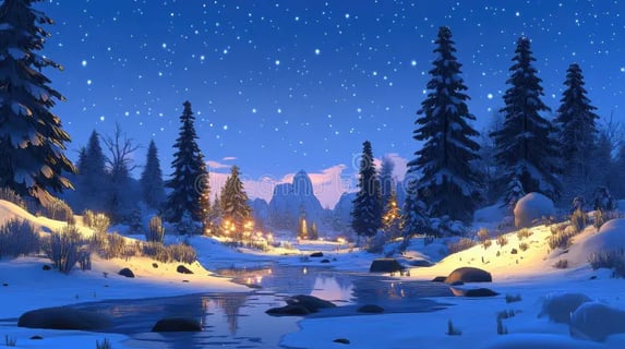 In the snowy town of Holly Haven, everyone loved Christmas Eve. Snow covered the houses, children hung stockings by the fire, and the smell of cookies filled the air. In the middle of the town was the Christmas Tower, a tall clock that rang at midnight to tell Santa it was time to deliver presents.