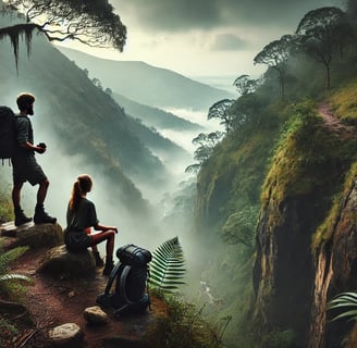 We spy on each other. He is sweating despite the cool morning breeze. I tap the stick in my hand on the gravel and take in the expanse beyond the chasm. The green mounds of western ghats sparkle there, unaffected by two miserable people gazing at them. The sky is overcast, contrary to the weather forecast. We take out bottles from our heavy rookie backpacks and sip water. I choose to break the silence.