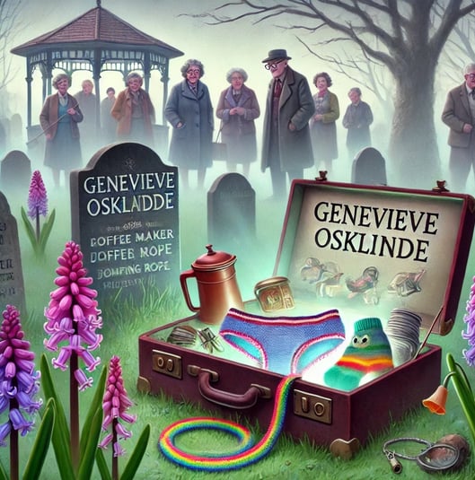 A group gathers at a cemetery to unravel Genevieve Oskleide's mysterious legacy.