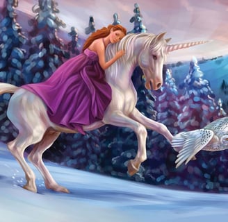 Once upon a time, in the heart of a lush, enchanted kingdom, there lived a kind-hearted princess named Isabella. She had golden hair that shimmered in the sunlight like threads of pure gold and eyes as blue as the summer sky. Her best friend and loyal companion was a magnificent unicorn named Glimmer. Glimmer’s coat sparkled like a thousand diamonds, and her horn glowed with a soft, magical light.