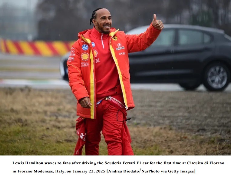 Lewis Hamilton, Formula One’s most successful driver, took his first laps in a Ferrari racing car on Wednesday, marking the start of his new chapter with the Italian team for the 2025 season. The 40-year-old British driver, now sporting Ferrari's iconic red, piloted a 2023-spec Ferrari SF-23 at the Fiorano test track, complete with his signature racing number 44 and a fresh yellow helmet design featuring the Prancing Horse logo.