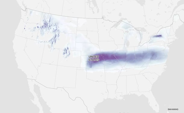 Kansas City, MO: Blizzard warning until 4 a.m. ET Monday. Snowfall of 6–14 inches, with ice and 45 mph wind gusts.