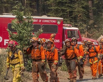 یہ قیدی اسٹیٹ ڈیپارٹمنٹ آف کریکشنز کے فائر کیمپس میں تربیت حاصل کرتے ہیں، جو کم سکیورٹی والی جیلیں ہیں اور فائر فائٹر اسکول کے طور پر کام کرتی ہیں۔