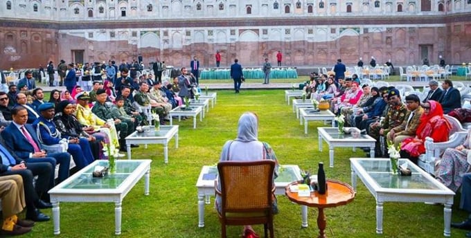 لاہور کے شاہی قلعہ میں ظہرانے کے موقع پر وزیراعلیٰ پنجاب مریم نواز نے 16 ممالک کے ڈیفنس اتاشی کا خیرمقدم کیا۔ امریکہ، روس، جرمنی، جاپان، تھائی لینڈ، انڈونیشیا، لیبیا، ملائیشیا، مالدیپ، میانمار، نائیجیریا، بلغاریہ، روانڈا، تاجکستان اور فلپائن سے آئے ہوئے مہمانوں نے شاہی عرض گاہ کے احاطے میں خود وزیراعلیٰ کا استقبال کیا۔ ملاقات کے دوران مہمانوں کے اہل خانہ اور بچوں کے ساتھ خصوصی دلچسپی لیتے ہوئے انہیں لاہور قلعہ کے تاریخی مقامات کی سیاحت کرائی گئی۔