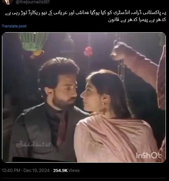 19 دسمبر کو ایک X (سابقہ ٹوئٹر) اکاؤنٹ سے شیئر کیے گئے ان 15 سیکنڈز کے کلپس نے سوشل میڈیا پر ہلچل مچائی۔ صارف نے ویڈیوز پوسٹ کرتے ہوئے پاکستانی ڈرامہ انڈسٹری پر فحاشی کو فروغ دینے کا الزام لگایا اور قانون نافذ کرنے والے اداروں سے کارروائی کا مطالبہ کیا۔