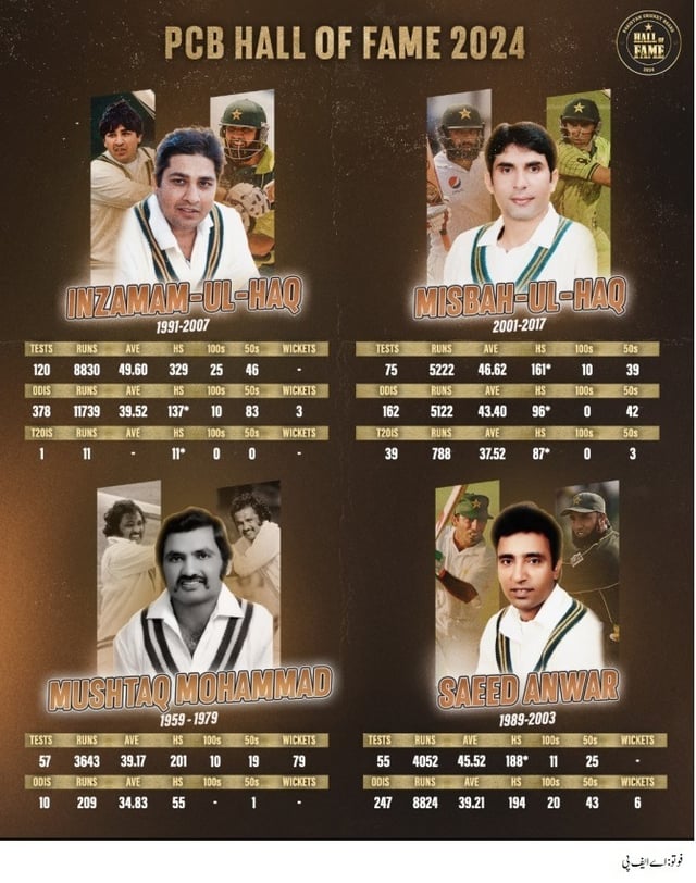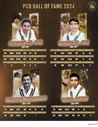 پی سی بی ہال آف فیم 2024: انضمام الحق، مصباح الحق، سعید انور اور مشتاق محمد کی شمولیت