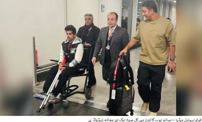 پاکستان کرکٹ بورڈ (پی سی بی) نے صائم ایوب کے علاج کے لیے انہیں لندن بھیجنے کا فیصلہ کیا۔ اظہر محمود کے ہمراہ وہ گزشتہ روز لندن پہنچے، جہاں ٹخنوں کے مسائل کے ماہر ڈاکٹر لکی جیاسیلن نے ان کا پہلا معائنہ کیا۔
